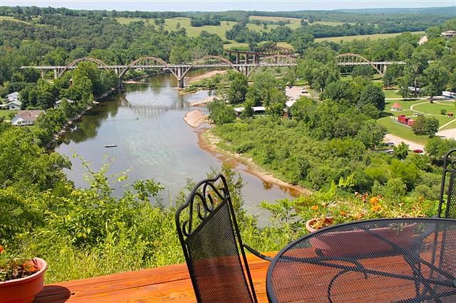 Million Dollar View Home on the bluff overlooking historic Cotter and famous White River. Country-side and river views from most every room. Private viewing platform with fire pit. Beautiful kitchen with stainless appliances. Dream workshop in basement with dust collector and 3 car garage. This 3/4 BR 3 BA home sits on 3.59 ac. m/l.