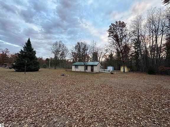 Park like 5 acre setting nestled in the woods. Could be an up north getaway or primary residence. Ideal location for summer and winter activities. Plenty of space for family and friends. Watch nature from your deck while enjoying your coffee. Several out buildings for plenty of storage for your toys. Price reflects need for minor TLC. New water pump installed, septic cleaned and inspected, newer metal roof. Just waiting for your personal touches!