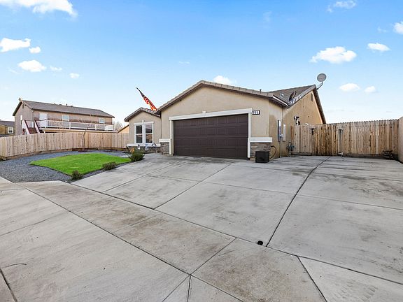 Welcome to Merlot Way. This home features 4 beds, 2 baths, Tesla Solar, RV Parking and we're just getting started! LTV updated flooring, open kitchen and dinning that leads right into the cozy living room. Laundry room has extra storage with multiple built in cabinets. Primary bedroom has a spacious walk in closet, his and hers sinks in the bathroom and an exit door into the backyard. As you enter the backyard you'll find a beautiful new pool, great space to entertain on the artificial grass area as well as storage with a shed on one side and RV parking on the other. This home has much to offer, schedule your private showing, today!!