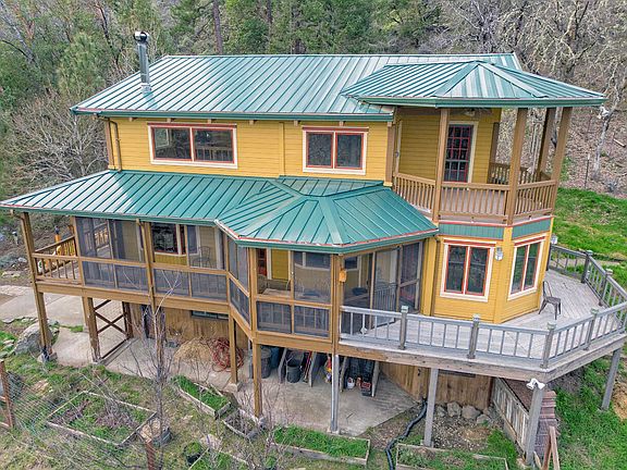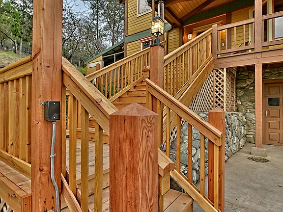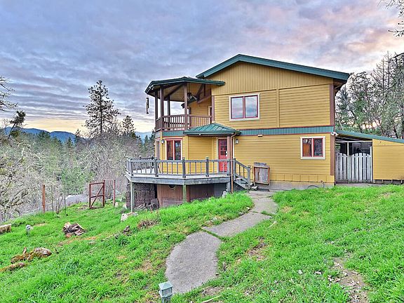 Discover your personal haven in Applegate Valley with this beautiful home that blends rustic charm with modern amenities. Hardwood and tile flooring flow throughout the home, leading you beneath vaulted ceilings and large wood cased windows offering mountain views. A wood-burning stove keeps you cozy. Recent upgrades include a newer metal roof, HVAC system, water heater, and fresh exterior paint, ensuring a move-in ready experience. The property boasts a sprawling 2,000sf shop, complete with its own septic system, electrical service, and a convenient half bath—a versatile space for your hobbies! The spacious 1,000sf attached garage provides space for vehicles & storage, while the top-of-the-hill locale gifts you with breathtaking mountain vistas, best enjoyed from the wrap-around Trex and wood deck. Rural life is completed with a chicken coop, irrigated garden beds, and the reliability of a good well. The property shares a border with BLM land.