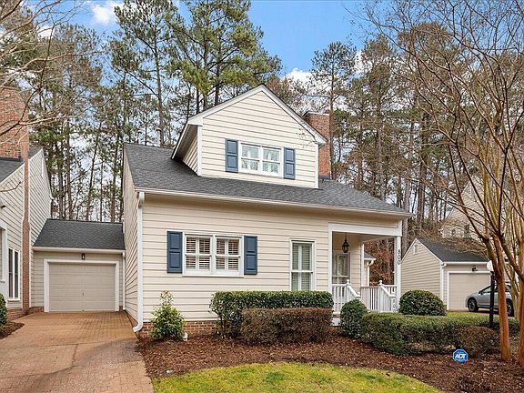 Lovely end-unit townhouse that lives like a single family home in cozy and inviting neighborhood, walkable to Shelley Lake. Features include first floor primary, nine foot ceilings, fabulous storage and a coveted garage. Walk in closet off second floor hallway makes a great office. Freshly painted, move in ready and all within minutes to North Hills, Crabtree,I-440, hospitals, restaurants and more!