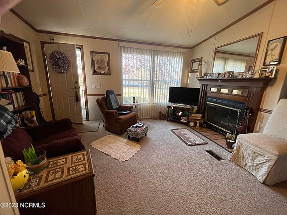 Very nice 3 Br 2 bath home on 3 lots, 12x24 shed, double carport, HUGE family room, living room with fireplace, eat in kitchen, back deck with awning. Wonderful amenities, boat ramp, clubhouse, beach, playground and lots of community activities. New siding,, appliances 2 yrs old, new paint, shed with electric hookup, recent septic cleanout, 2021 heatpump,