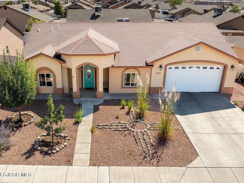 Welcome to your Four Corners haven in the Mesa Vista Subdivision. Adorned with pollinator friendly landscaping in front and back, complete with a large Zia rock formation and a front door adorning the protection bearing turquoise color famous in the Southwest. This 1735 sqft 3 bedroom, 2 bathroom home offers a large open floorplan to compliment the easy flow of life, while simultaneously offering privacy inside the home with a split floorplan for the bedrooms. In the kitchen, you will enjoy the high breakfast bar to create a large work area and a pantry to store all of your necessities. With vaulted ceilings, and ceiling fans throughout, the refrigerated air will keep you comfortable even on the hottest of late summer days. Outside, you will enjoy the grapevines and peach tree in the backyard. Paired with Wisteria, Hollyhocks, and other pollinator friendly plants the yard is full of life. In the front you will enjoy an apple tree! The 2 car garage is nicely finished, so when we do get those frosty days you won't have to worry about scraping that windshield.Schedule your showing today!