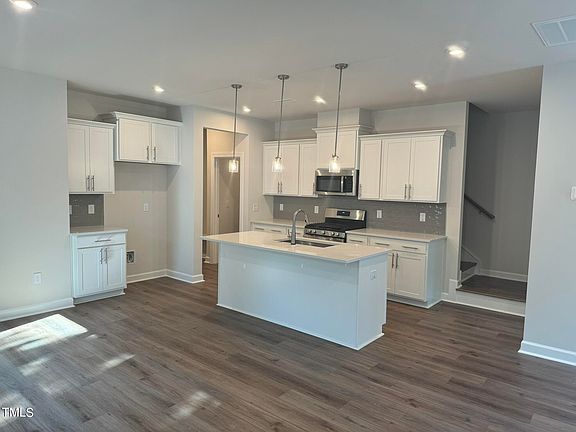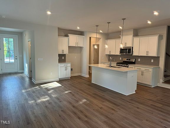 MOVE IN READY HOME.....NOW SELLING and ready in August! Urban accessibility with suburban tranquility! Embrace the opportunity to own a modern townhome in one of Durham's most sought-after communities. Situated near RDU International Airport, RTP, Brier Creek Commons, and Umstead Park. Tredenham provides a lifestyle enriched by proximity to shopping, dining, groceries, schools, and parks, all just minutes away. Whether you're commuting within the Triangle or exploring nearby amenities, this location offers unparalleled convenience. Step inside to discover the Shepard plan on homesite 17, boasting 1900 square feet of thoughtfully designed space. The entry welcomes you with an open foyer, setting the tone for the stylish interior featuring modern White cabinets with soft close hinges. The kitchen showcases quartz countertops and a modern gray tile backsplash. The Shepard also features a downstairs study area in addition to the bedrooms! Relax and rejuvenate in the tiled primary shower and enjoy ample space with spacious primary and secondary bedrooms, along with a versatile loft area ideal for various living arrangements. All townhomes include Tri Pointe's Home Smart package, complete with a WIFI system, Ring Door Bell, and a car charging outlet, ensuring modern convenience at your fingertips. Energy-efficient features include a tankless water heater and durable Hardi cement board siding, promising sustainability and comfort. HOA Fees include exterior maintenance (landscaping, maintenance of siding and roof), trash, and recycling. Call Rita for an appointment at 919-762-6850