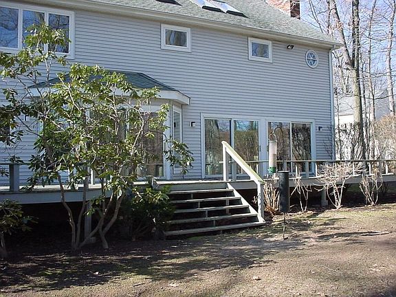 Set back far from the road, this stately, custom designed and built colonial with a contemporary flair is a great retreat offering space and privacy. Built in 1988, this home has 3,539 square feet with 3 bedrooms and 2.5 bathrooms plus a very oversized two-car garage. There are plenty of generously sized common and private spaces for formal entertaining or for maximizing casual, comfortable living. Abundant natural light comes from loads of windows, sliders, and skylights which also allow for easy viewing of the natural beauty surrounding the home. The large open kitchen with custom cabinets, Corian counters, work station, sliders to the deck, and sizable eating area flows wonderfully in to the expansive family room with wood burning fireplace and two more sets of sliders to the deck. The formal dining room features hardwood flooring, a built-in hutch, chair rail, crown moldings, and a large bay window overlooking the lovely, private front yard. The formal living room is large, pleasantly private, and it also offers a great view of the front lawn.