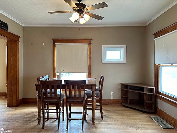 Cute bungalow with great character offers 2 bedrooms, a full bathroom, formal dining room, and living room, all with beautiful woodwork. Kitchen has walk-in pantry and access to basement, the great fenced-in backyard, and the attached single car garage. Attractive covered front porch for relaxing. This home is on a corner lot in desirable neighborhood, just a block east of Hwy 14/7th Street and a few blocks south of the hospital. Don't miss out on this property!