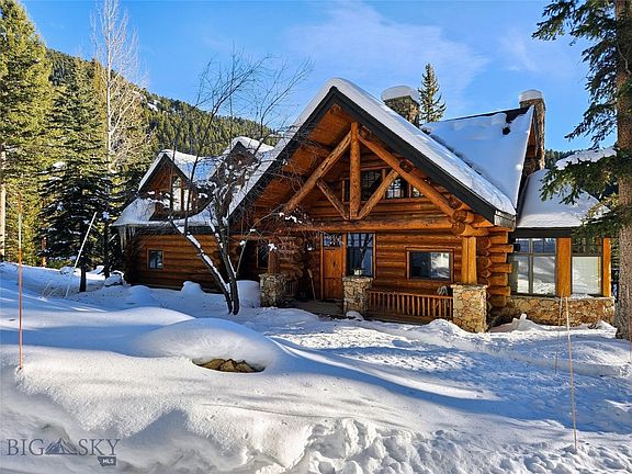 A rare, single-family opportunity in one of the last, untouched, pristine settings in Big Sky. A serene and quiet area, ideally located mid-mountain along the North Fork Creek in the private, gated, Triple Triangle Ranch. 29 acres abut the flowing North Fork Creek and offer beautiful views of Yellow Mountain and Buck Ridge. This classic and timeless +/- 3,651 sq. ft. log home feels wonderfully spacious with a very livable floor plan, 4 bedrooms/3.5 baths, a beautiful great room showcasing the huge, hand-hewn logs, a vaulted ceiling, large expanses of glass, a floor-to-ceiling river rock fireplace, and an expansive deck for outdoor living and entertaining. The spacious main-floor master bedroom suite features access to the south-facing deck with a hot tub. A charming loft for extra seating/sleeping features a cozy propane cast iron stove. Sold furnished and move-in ready sleeping 10 comfortably. The detached garage has a fully equipped +/- 675 sq. ft caretaker apartment with a kitchen, living room, bedroom and bathroom. Incredible location immediately adjacent to the Lone Mountain Ranch Nordic ski and hiking trail system for winter or summer enjoyment, the North Fork Creek, and the Lone Mountian Guest Ranch. Convenient to shopping, restaurants, and the ski area, this home is a must-see for the Buyer looking for the perfect balance of privacy, tranquility, access to trails for recreation, live water, and convenience. There is really nothing else like this on the market in Big Sky.