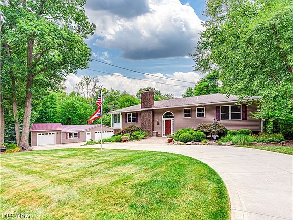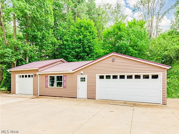 This 4 bedroom 3 bath home is nestled in a beautiful wooded setting, this property features a circular drive and boasts a total of 7 car garages. The open floor plan includes a cozy living room with a gas fireplace, a kitchen equipped with a breakfast bar, Granite countertops, stainless steel appliances, and a double oven. Adjacent to the kitchen is a spacious dining room and a sunroom perfect for year-round enjoyment. The master suite offers a private bath and a luxurious walk-in shower. The lower level is fully finished, providing flexible space, that can serve as a guest suite, family room, office, bedroom, bathroom, kitchenette, and laundry room. An expansive 56 x 24 outbuilding is heated, insulated, and plumbed for an air compressor, making it ideal for various uses. Recent improvements include a new washer, dryer and dishwasher in 2023, a deck and Nature Stone flooring in the 2-car attached garage in 2020, a furnace with 3 zones and an H2O tank in 2018, an air conditioner in 2017, a septic system in 2015, and windows, a roof, and a water softener in 2011. Call today to see.