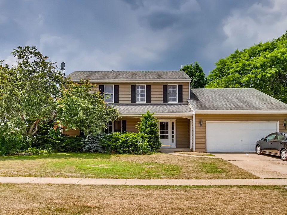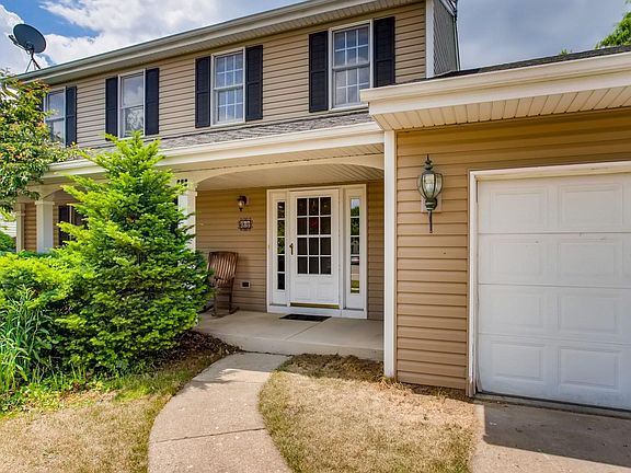 Colorful 2 story with 4 bedrooms and 2.5 baths in Valley Creek subdivision on a quiet dead end street. Awesome location close to I90, metra train, shopping, schools, and hospital. Covered front porch. Living room with hardwood floors and picture window. Bright eat-in kitchen with breakfast bar and table area. Raised oak cabinets, granite counter tops, tin tile back splash and hardwood floor. Samsung stainless steel bottom freezer refrigerator, Kenmore 5 burner gas stove, dishwasher, washer, and dryer all included. Sliding glass doors to cement patio and paver brick patio. Sunken family room with hardwood floor and gas start, wood burning fireplace. Custom oak built-ins. All 4 bedrooms are on the 2nd floor. Master bedroom has 2 double door closets and a private full bath that has a marble floor and quartz vanity top. Partially finished basement is very spacious. 1st floor laundry room. Siding, roof, furnace, and a/c are all approx 10 years old. Hot water heater is 3 years. Fenced yard.