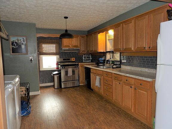Great home with many updates. Replaced windows and doors, all water lines, new 200 amp electric box and some wire, 2 new sump pumps, newer hwh. Updated Kitchen, total full bath remodel, some drywall, lights, barndoors, A/C 2 mos old, main sewer line replaced. This home offers 2 full baths. There are barn doors and rustic touches throughout. Nice screened in porch and also concrete patio. 18 x 34 detached outbuilding. 5 pear trees in front, Pear, apple and peach trees in garden area. Kids play set stays with the house. 2 sheds. Above ground pool and pool table can stay or seller will remove. Dont wait.