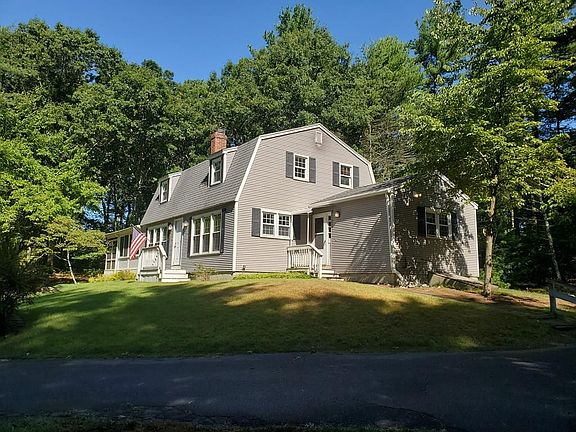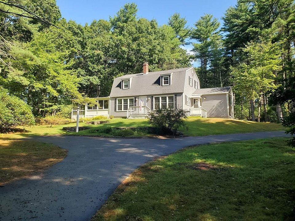 4.28 acres in Raynham! This charming gambrel has an unbelievable lot & is extremely private w/ gently rolling hills & woods. The main level has a very open floor plan w/ lots of light, face-nailed, heart pine flooring & exposed beams above. The kitchen, dining room, living room (w/ hearth & flue for wood stove) & sun room are all open to one another. Harvey windows throughout including the sundrenched family room & the first floor master bedroom w/ ceramic tile full bath. The first floor also has a tiled half bath & laundry room w/ an extra fridge & built in storage space. Upstairs are 2 ample bedrooms, one w/ a large walk-in closet/dressing room & another full bath. The property is accented w/ beautiful stonescaping & front steps & has extras including the screened-in 3 season room, central air, central vac, generator, architectural roof & oversized quonset style, steel garage w/ power and light. Seller in process of connecting to public sewerage. First showings to begin Monday 8/24.