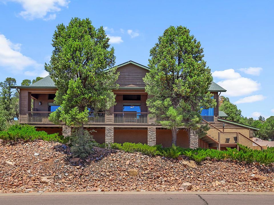 Experience elevated Rim Country living in this elegant 4-bedroom, 2-bathroom, 3,015 sq ft home located in Payson's Woodhill Subdivision. This beautifully maintained property features vaulted ceilings, energy-efficient windows, and an open floor plan with granite countertops, custom cabinetry, and natural stone finishes. Enjoy panoramic mountain views from the oversized covered deck, ideal for relaxing or entertaining. The primary suite includes a spa-inspired bath with modern finishes. Additional highlights include a 3-car garage, office space, bonus rooms, and ample storage. Discover a perfect blend of comfort, style, and natural beauty in the heart of Payson, Arizona.
