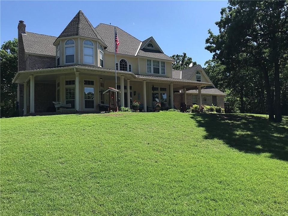 Peaceful, country living with deer to greet you in the evenings! Home is on 12.45 acres (mol) with a 3 acre sprinkler system. Home has wrap around porch with a picturesque view of the grounds & stocked pond with fountain. Property is cross-fenced with pastures for horses (and any other animal you want!). Gated entrance. Multipurpose barn/workshop (2000 SF mol) with an office. Plenty of room for any growing family with 2 living areas downstairs, 2 dining, large entry with a classic staircase, family room and office upstairs. Beautiful refinished hardwood floors, remodeled kitchen in 2016 with all new SS appliances with granite counter tops, double oven, gas fireplace, 6 zoned heat/air, cedar closet, & detailed finishes throughout. Open floor plan with an awesome view of the new (2017) 16x32 pool. 3rd car stall has been converted to a bonus room with a/c, currently being used as a bedroom, making an oversized 2 car garage (can be easily converted back to a 3 car garage by buyer!)