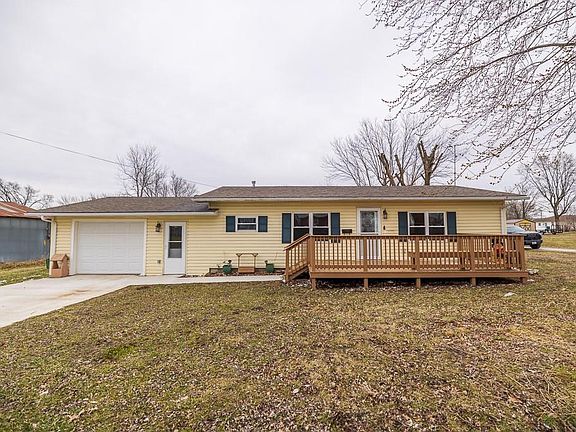 Sitting towards the north end of Braymer is this cute 988 Sq Ft ranch home with attached garage. The home features 2 bedrooms and 1.5 baths with stackable washer and dryer to save space. All appliances come with the home and there is a separate one car detached garage for extra storage. A new concrete driveway has been installed along with a newer front deck. The house and additional garage both have low maintenance vinyl siding and the garage had a new roof installed 4 years ago. The large lot provides plenty of room for kids to play or to build another shop for your toys. Don’t miss out on this affordable home on a large corner lot.