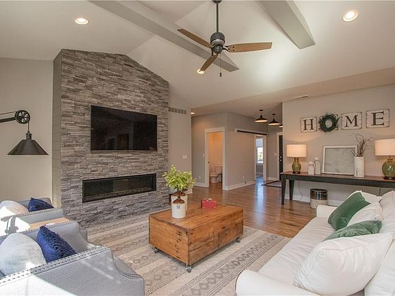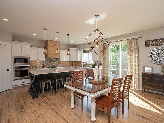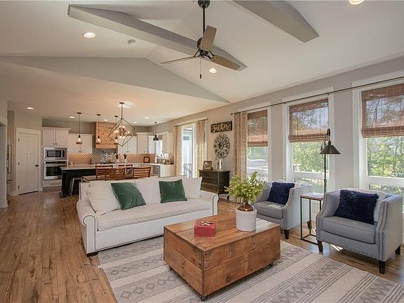Modern farmhouse ranch on cul de sac. Gorgeous great room has high ceilings & wood beams & floor to ceiling stone fireplace. Incredible high-end finishes including custom cabinets, shiplap accents, sliding barn doors, quartz counters, stainless appliances, designer light fixtures & tile backsplash. Large farm table style island w/ seating, focal point wood hood vent & pot filler. Master suite has luxurious bath with dual vanities & walkin closet. 2nd bedroom has private bath. Office/den at front of home, powder room, mudroom, & laundry w/folding counter & sink. Lower level offers 2 large bedrooms & full bath. Stunning family room w/ modern tiled wet bar. Reclaimed barn doors lead to a home gym. 3 car attached garage, extensive landscaping, large backyard w/ park-like setting. Conveniently located in Northeast Grimes near Beaver Creek Golf Club. 13 Mo HWA Platinum Home Warranty included!