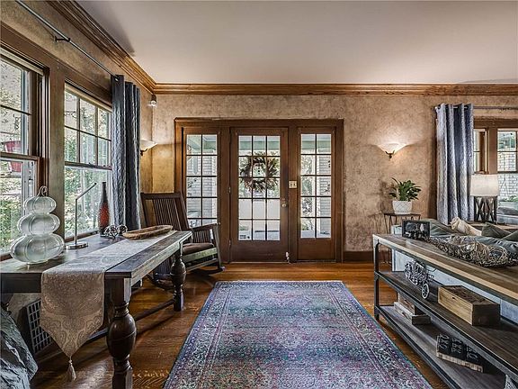 4 bed | 2.1 bath-all updated. Wrap around front porch and back yard perfect for entertaining. Veranda that overlooks heated, saltwater pool w/waterfall, jumping rock, tanning ledge, hot tub/spa. Large corner lot with extensive and exquisite landscaping. Primary bedroom suite has full bath and walk in closet. 4th bedroom used as study/home office with gas fireplace. Zoned HVAC, storm windows and 4 storm doors. Large utility basement for laundry, wine cellar & extra storage NOT counted in squ ft of home. Automatic gate opens to beautiful ivy covered, brick garage to be sold "as is"- functioning 2 car garage with no repairs to be made by seller.