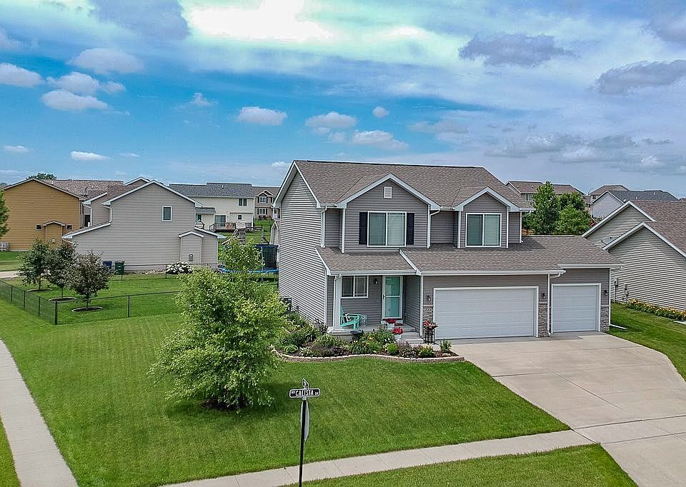 This impressive 4-bedroom 2-story home with a finished basement stands out from the crowd in Grimes. You'll love the oversized corner lot, magnificent landscaping and the many upgrades that make this home very special. The curb appeal says it all with a lush lawn, beautiful flowers and there's a nice-sized covered front porch. You'll greet your guests in an entry foyer that includes a built-in bench/shoe locker. A few steps down the hall you discover the main living area with a family room, kitchen and casual dining area. The entry hall, dining area, and kitchen all feature a beautiful wood laminate floor. The main focal point of the carpeted living room is a gas fireplace. The dining space includes a sliding door exit to a 10' x 10' treated wood deck that steps down to a marvelous 20' x 14' stamped and stained concrete patio. It's the perfect place for a cook-out with friends and family. The patio overlooks a spacious yard that's enclosed with a black chain-link fence. Back inside, you'll love the kitchen. It boasts beautiful granite countertops and perfectly matched tile backsplash. You'll appreciate the center island that doubles as a convenient breakfast bar. There's also a good-sized pantry and the stainless kitchen appliances are included. This level also includes a half bath and an exit to the attached 3-car garage. You'll find the master bedroom suite on the upper level. It includes a vaulted ceiling, walk-in closet, and an en-suite bathroom. The bathroom features a tile floor, a granite vanity top, and a tub/shower combination. There are 3 more good-sized bedrooms on this level and another full bath. The laundry room is also on this floor. The lower level is finished and includes a nice-sized family room. There's also a pre-plumbed area for a future wet bar and there's a space secluded behind a sliding barn-style door that's pre-plumbed for a future bathroom. You'll also value the sizeable unfinished area that provides clean and dry storage. This Grimes location is perfect, close to the town center and offers fast access to the Interstate, parks and bike trails. Be sure to come to check out all of the wonderful amenities. This home won't last long. Call or text Jon at 515.339.1617 today to schedule a showing!