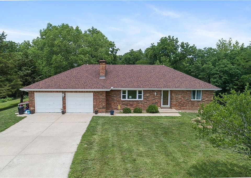 Welcome to this extraordinary all-brick ranch home, situated on 35 picturesque rolling acres with breathtaking views of two converging creeks. This remarkable property features a 400 square foot addition that provides a stunning 270-degree view of the surrounding landscape, including bird feeders and the serene rolling hills.Inside, you'll find a meticulously maintained living space with a finished walkout basement that offers versatile options. The basement even extends beneath the garage, providing additional possibilities for storage or customization.The property also boasts a large metal outbuilding, perfect for storing equipment or pursuing your hobbies. The expansive acreage includes naturally bounded pastureland, flanked by magnificent bluffs and woodlands, creating a truly idyllic setting.With its captivating views and impeccable upkeep, this home is ready for its next chapter and the adventures that await. Don't miss out on this rare opportunity to own such a substantial piece of land, conveniently located close to town.