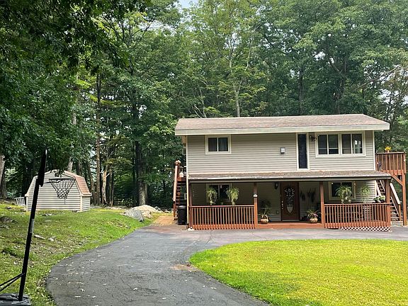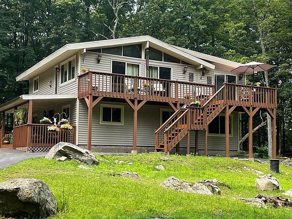 LOCATION, LOCATION, LOCATION!!!! Backs up to the Lords Valley Country Club Golf Course, walking distance to the Country Club itself and has a winter lake view!! This house is situated on a flat corner lot with tons of potential!!!! 4 bedroom 2 bath house with a sunroom, family room and loads of deck space as well as a covered porch entry says Welcome Home from the time you pull up on the circular paved driveway. Take a look today and get ready to start enjoying life!