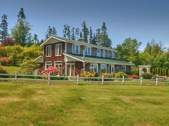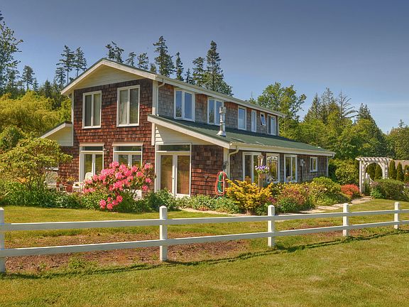 Fall in love instantly with this dreamy wood shingled 2766 square foot converted barn home of timeless romantic beauty with gorgeous north facing water views of the Puget Sound, Whidbey Island, Mount Baker & the shipping lanes - it will capture your attention immediately! Converted from a monitor barn in 1992, you will be delighted by its charm and style. Look out of most every window in this house from top to bottom to see a picturesque vignette . Once you step foot on the gorgeous 1.14 acre landscaped grounds, you will never want to leave. 3 bedroom suites total all with bathrooms - one master or guest suite on main level, a gorgeous master suite upstairs with amazing views, and a 3rd bedroom suite/or private office space upstairs. Also in the home: a Large mudroom/laundry room, a working artist studio, amazing 17'x21' workshop and a greenhouse on the property. Hardwoods, clear fir moldings/doors, french doors, wood beam ceilings, newer metal roof and an emergency generator. Just steps to the community beach access for incredible oyster collecting! Would make a great full time residence, weekend retreat or would make a fabulous vacation rental / Airbnb. Floor Plans available upon request!