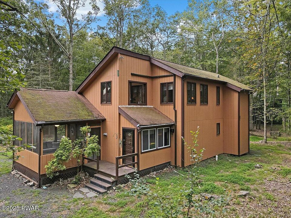 Charming 3-Bedroom, 2-Bath Home in Hemlock Farms - A Serene Retreat in a Premier Gated Community just a short walk from the lake! Nestled on a quiet cul-de-sac in the sought-after Hemlock Farms Community, this beautifully maintained 3-bedroom, 2-bath home sits on a private, wooded 0.64-acre lot and offers the perfect blend rustic charm and modern comfort. Step inside to an inviting open floor plan with a cozy rustic cabin feel, featuring a wood-burning fireplace with a striking custom barnwood mantel. The home includes a fully screened-in porch, perfect for relaxing and enjoying the peaceful surroundings, and a shed with electricity for extra storage or workspace. This home comes equipped with five split-unit heating and air conditioning systems and all new black print proof stainless-steel appliances. Some furnishings are included. Enjoy lake rights to a non-power boat lake, and take full advantage of the community's extensive amenities: Indoor and outdoor pools, Multiple lakes, Tennis courts, Fitness center, Clubhouse, Playgrounds, 24/7 gated security and more! Ring security cameras are also included for added peace of mind. Whether you're looking for a full-time residence or a weekend getaway, this home offers comfort, privacy, and access to everything Hemlock Farms has to offer.