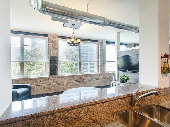 Sought after top floor unit facing south towards downtown. Lots of upgrades including wood floors and granite counter tops. Kitchen opens to living room with lots of windows (installed by owner as an upgrade). Breakfast bar and exposed brick. Slate floors in the bath (also an upgrade). Unique bath is considered one and half baths by some as each bedroom has its own separate vanity. Amentities include pool, with grills, gym, movie theater and business center. Walk to restaurants, shops, Piedmont Park , the Fox Theater and GA Tech.