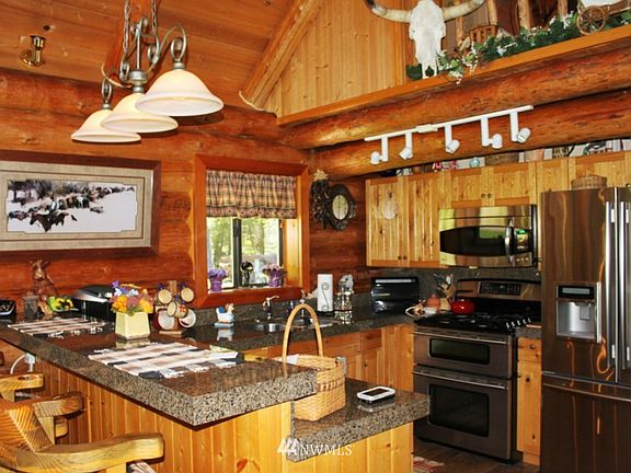 Unique 14+ acre equestrian property. Meticulous open concept log home w/ loft & room to grow. Curl up by the fireplace & enjoy the view from the soaring window wall. Granite counters, stainless steel appliances, dual-head shower, & radiant in floor heat. Incredibly landscaped w/ water feature, garden, patio & deck. 3 car garage w/ shop, 4 stall barn w/ room for 2 more plus 20+ ton hay storage, fenced/cross fenced, riding arena. Access to John Wayne Trail. Too much to list- this is a must see!