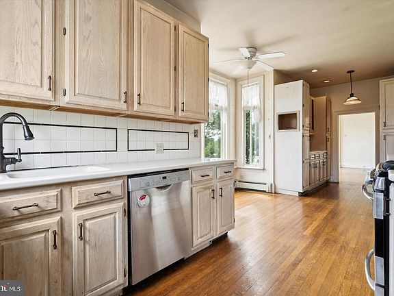 Welcome to 800 Radcliffe, a stately home combining timeless elegance with modern amenities, perfectly situated to capture breathtaking river views. This beautifully maintained residence boasts a stucco exterior accented by working wood louvered shutters and has recently been updated with brand-new shingle and flat roofs. The home features replaced windows throughout, ensuring energy efficiency while maintaining its classic charm. As you approach the property, you are greeted by a brick walkway leading to the front door, flanked by matching brick sidewalks. The two-car garage offers ample parking and can be easily expanded. A standout feature is the expansive covered porch on the second floor, which spans three bedrooms and provides a serene outdoor space to enjoy the picturesque views. The lower basement level opens onto a brick patio, nestled among mature fig trees, perfect for outdoor entertaining. Inside, the home offers 200 amp service, a whole-house generator, and efficient oil heat with hot water radiators and baseboard heating. There is central air conditioning on the first floor, while hardwood floors, large baseboards, and detailed moldings add warmth and character to every room. The front family room, just off the kitchen, invites you to relax by the beautiful fireplace, which features a tile surround and a gas insert in the foyer. The kitchen, located at the rear of the house, overlooks the river and is equipped with a gas range, double sink, and ample cabinetry. The adjacent dining room, bathed in natural light from four large windows, offers stunning views of the river and flows seamlessly into the living room, where another fireplace awaits a gas insert. A mudroom, located at the front left of the house, includes a full bathroom and washer/dryer hookups with a laundry tub, offering the potential for conversion into first-floor living quarters if desired. The oak staircase, with its exquisite craftsmanship, leads to the upper floors. On the second floor, the master bedroom features a walk-in closet and a fireplace ready for a gas insert. The ensuite bathroom boasts a double sink, tile flooring and walls, and a custom walk-in shower that can easily be converted into a steam shower. The remodeled hall bathroom showcases classic white subway tile, while the second and third bedrooms offer direct access to the covered porch with serene river views. Finished woodwork, including crown molding, adorns these rooms from floor to ceiling. The third floor houses four additional bedrooms, one with a private bath, and a hall bathroom, providing ample space for family and guests. This property is being sold as is with the buyer being solely responsible for any repairs and/or certifications needed to obtain financing or the use and occupancy from Bristol Borough 800 Radcliffe is a rare gem, offering the perfect blend of classic architectural details and modern comforts, all set against the backdrop of stunning river views. Don't miss the opportunity to make this exceptional property your new home.