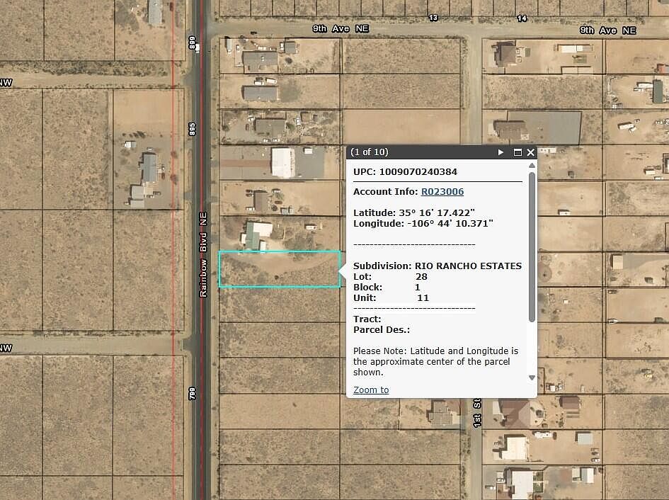 Located within the city limits of Rio Rancho, this 1/2-acre parcel offers an ideal setting for your future home. Situated on a paved road for easy access, the property features an east-facing backyard with breathtaking views of the Sandia Mountains--perfect for enjoying colorful New Mexico sunrises. While electricity is available, water is just one lot away, making this a promising site for development. Whether you're looking to build now or invest for the future, this lot combines convenience, beauty, and potential.