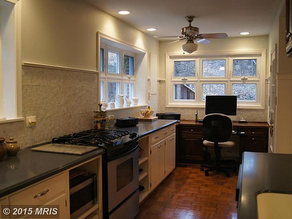 Surprisingly spacious West Towson home backing to stream and wooded lot. Enjoy nature 365 days of the year. Court location. Natural gas heat & cooking. Replacement windows throughout, new roof & insulation, updated baths. Renovated kitchen open to DR. Built-in desk. 4 BRs on upper level. Kitchen, LR, DR walk out to deck. Storage/utility rm with half bath. MBR w/ full bath, 2 designer closets, FP.