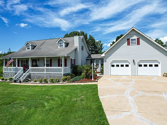 Experience captivating countryside views from this charming Cape Cod residence nestled on 2.02 acres +/- of scenic beauty. Boasting 4 bedrooms and 3 baths, this home offers a generous open living area, well-appointed kitchen with modern appliances, a separate dining space, and elegant hardwood floors throughout the living, kitchen, and dining areas. The main floor features a spacious primary bedroom with an ensuite bath, alongside a den and screened porch for relaxation. The tastefully landscaped yard showcases blooming trees and shrubs, while the elevated position of the house provides stunning property and countryside views. Complete with a sizable 2-car garage with potential finished storage above, this home presents a perfect blend of comfort and tranquility. Buyer and or buyers agent to verify all information.