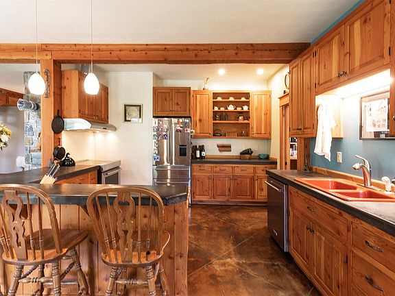 Custom built wood sided home in the town of Alberton. This modern 3 bedroom / 2 bathroom property has a passive solar design and high end finishes on six lots with the option of future development. The home features 9 ft ceilings, radiant floor heating, open floor plan, concrete counter tops, custom wood cabinets, newer appliances, wood stove, shed, stained glass and a sweet deck off the master bedroom. The garden to the west of the home has a 1500 gallon water cistern for rain water collection. There's plenty of room for a garage. The Clark Fork River is just a couple miles from the home and there are hiking trails within walking distance. Please call Clint Rogers @ 406.544.3730 or your real estate professional to set up a showing. The city of Missoula is less than 25 minutes from the property.