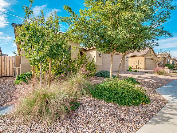 Welcome home is how you feel when you step inside this single level property now available in desirable Buckeye. Providing great curb appeal, paver patio, RV gate, and gravel front landscaping. Welcoming interior is complete with 4 bed, 3 bath, living/dining area, neutral color palette, bonus room, and picture windows that bring in so much natural light. Gourmet eat-in kitchen includes black matching appliances, cabinetry with crown molding, granite counter-tops, double-door pantry, centered island with sink and breakfast bar, and recessed/pendant lighting. Bright master bedroom gives you a lavish full bath with dual sinks and walk-in closet and updated shower. Spacious backyard with covered patio and grassy area is just perfect for your gatherings.
