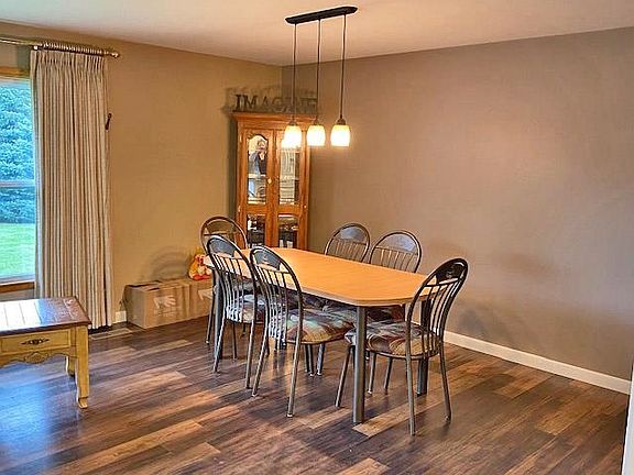 Move in Ready 4 BR 3BA ranch style home. Main level features an open concept kitchen, dining and living room with fireplace. A main level family room with patio doors leading to a covered patio with a lovely view. 3 BR's on the main level w/full bath and master suite. Basement has another bedroom and 3/4 bath, large rec room with plank flooring, & laundry/storage room. 2 car attached garage and small building in the back. No maintenance exterior w/LP siding & seamless gutters. Underground sprinklers.