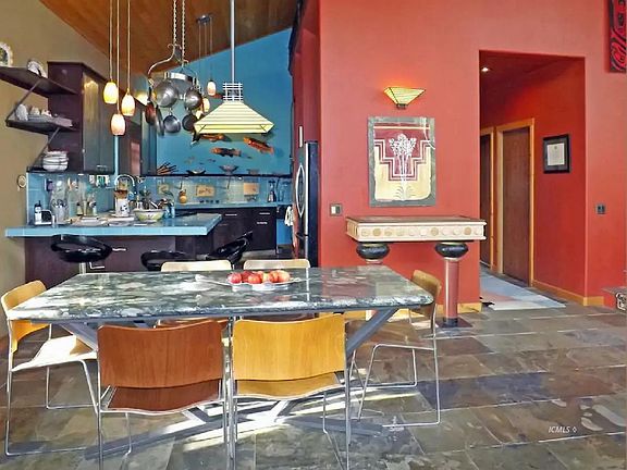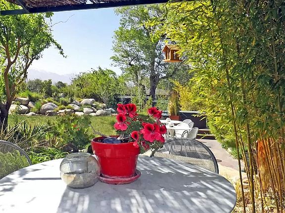 Contemporary red-cedar home in very desirable neighborhood. Two master suites with custom baths and loft or third bedroom with full bath. Floor to ceiling wall of windows encompass the living area and bring the outdoors in with french doors and patios. Southern exposure, slate floors, argon-gas windows and solar hot water create eco-friendly passive heating. Enjoy vistas inside and out of the Sierras Mt Tom, Humphrey and White Mt Peak and harvest your own grapes, cherry, peach, nectarine, apricot, currents, persimmon, and almonds fruits. Garden has been featured on four garden tours. Solar greenhouse becomes summer cabana for entertaining adjacent to the spa. Enjoy the Resort Atmosphere.