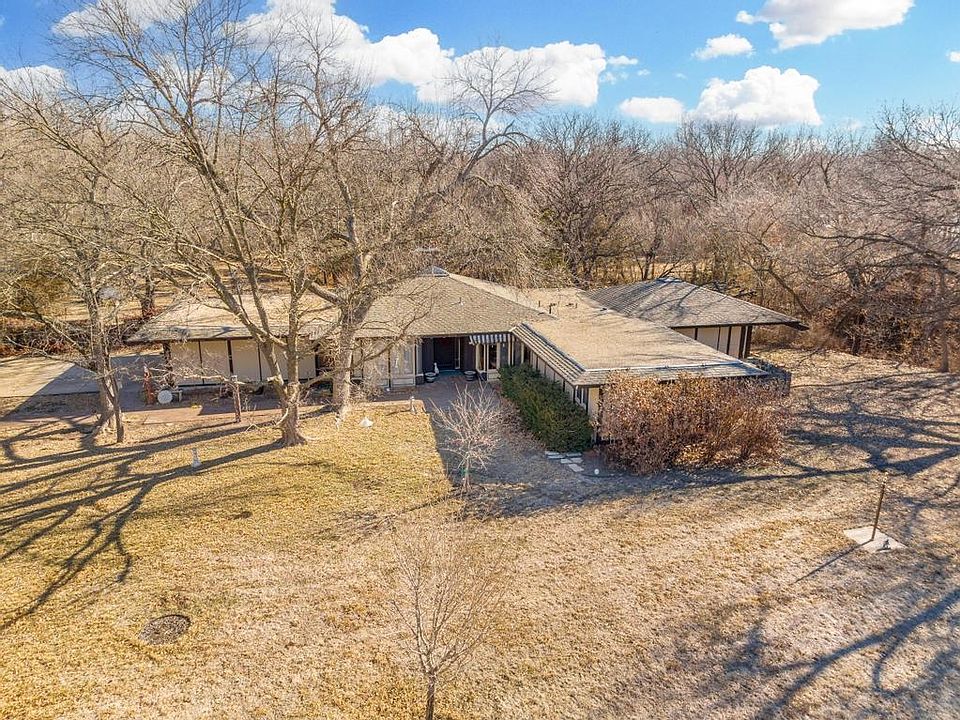 This is a unique custom built home on secluded 1.30 acre tract with lots of trees, dry creek located on a cul-de-sac! Home has beam ceilings, aesthetic view with lots of landscaping, several stain glass windows adorn this home. 4 bedrooms, 2 baths home with 2 living areas on main floor plus basement has large recreational room with a fireplace. Many unique features! Home has well and public water. Home features lots of storage and unique design. One owner home, many hours spent in garden and yard. Large patio overlooking creek area! Must See!