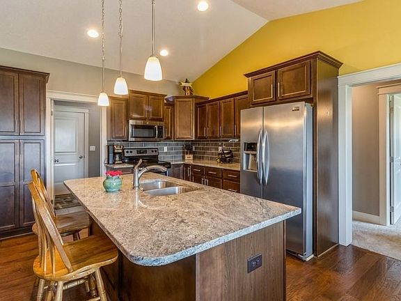Quality built ranch home! Spacious open floor plan with nearly 3000 sq ft finished. Vaulted living room and stone fireplace. Gorgeous kitchen with hardwood floors, granite countertops, tile backsplash, pantry and breakfast bar. Master suite plus two additional main floor bedrooms with Jack and Jill bath. Main floor laundry with half bath. Open concept basement with daylight windows, 4th bedroom, full bath, bonus room downstairs that functions as an office or exercise room and plenty of storage. Enjoy the bike and walking trail around the Meadowlark South neighborhood and prairie. Well-maintained landscaping provides fresh cut roses all summer from your own yard. Great schools and neighborhood. Easy access to Hwy 141.