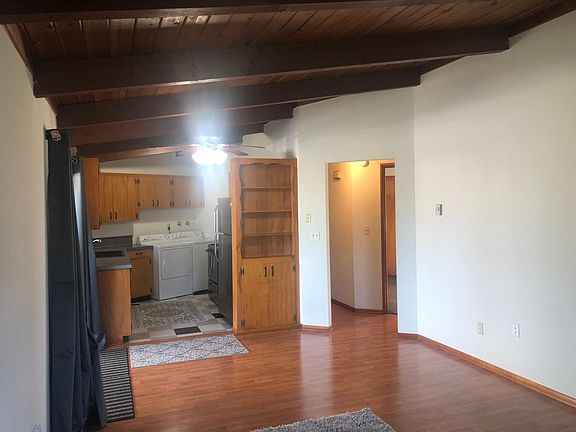 This 2 bedroom, 1 bath is in a single story 3 Plex. There are two 3 Plexes on the property. This mid-century has lovely open beam vaulted wood ceilings in the living room, kitchen and both bedrooms, with natural wood cabinets and doors. It includes a full size washer and dryer along with the refrigerator and range. It also includes water, sewer and garbage. There is off street parking for 1 car. It also has a nice size fenced in patio with two smaller attached sheds. It is all electric. It is currently occupied, so please, Do Not Bother Residents. I pre-screen over the phone prior to scheduling a viewing to verify you meet the income and rental criteria. If interested, please email me telling me a bit about yourself. Also, you MUST leave your phone number, and the best time to return your call. I only accept applications after all adults in the group has viewed the unit and it has been 72 hours after posting this unit. DETAILS: AVAILABLE: OCTOBER 15TH NO SMOKING ALLOWED ON PROPERTY NO PETS SECURITY DEPOSIT: EQUAL TO 1 MONTH RENT APPLICATION FEE: $50 PER ADULT(18 OR OLDER) INCLUDES WATER, SEWER, GARBAGE RENTERS INSURANCE REQUIRED LEASE: 12 MONTH OWNER PAYS FOR WATER, SEWER AND GARBAGE NO SMOKING ALLOWED NO PETS 1 OFF STREET PARKING SPACE PER UNIT NO SUBLETTING LEASE: 12 MONTH