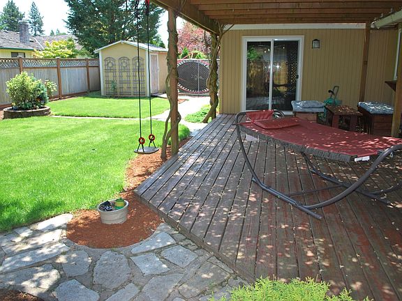 Well maintained single level home with amazing floor plan and large backyard. Vaulted ceiling in living room, skylight adding lushness of natural light, ceiling fans in every room, granite countertop in the kitchen, garage equipped with built in work bench and shake roof are just a few of the assets of this home. This home has both living room and family room separated from the bedrooms. Family room has fireplace and built in cabinets which has an entrance to beautiful shaded deck and nicely landscaped backyard with raised beds for gardening and dog run. Recent upgrades include new furnace, laminate flooring in all bedrooms, granite and tile countertops, freshly painted deck and walls. Take a chance to check it out and fall in love with this house like our guests do. Neighborhood Description It is in a great neighborhood close to Nike, Intel, parks, shopping centers and Hwy26. House is within walking distance to MAX, Elementary School, Fred Meyer and Costco.
