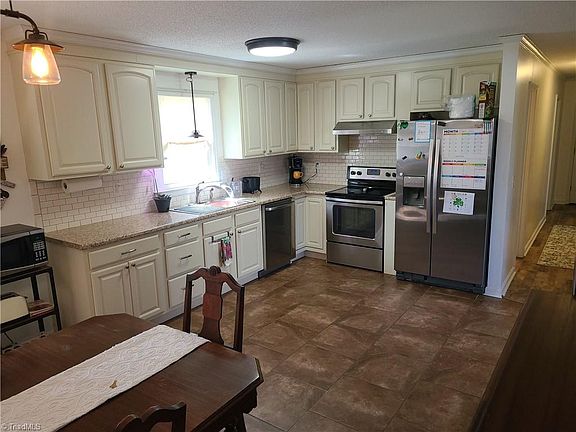 Move in ready and affordable home in Rural Hall. Nice looking updated kitchen features tile flooring, subway tile backsplash and newer cabinets. Baths have been updated as well. Newer LVP and tile flooring throughout. Neutral paint colors. Spacious bedrooms with generous closets. Home has a full unfinished basement that could easily be finished for additional living space. Basement garage door for easy access. Huge lot is almost a full acre. Heat pump was new in 2022 and home has vinyl replacement windows. Quick and easy commute to Winston Salem, or Kernersville and Greensboro via the new beltway.