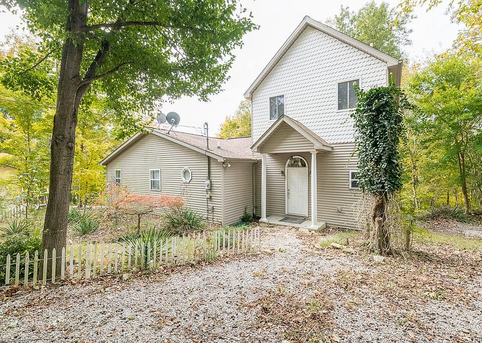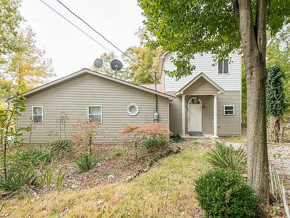 Gorgeous two story lake home with stunning water and sunset views. Fully furnished and ready for fun, this amazing property is the perfect family home - as either a permanent residence or weekend getaway: ~ 3 bed/ 2 bath / 4 car garage / 3 lots. Home is 2120 square feet. ~ Master suite upstairs has a private water view balcony, custom full bathroom, quirky wall urinal, vaulted ceiling and large walk in closet. ~ Two bedrooms on the main level with full bath off the great room. ~ Huge laundry / storage / closet room off the entry. ~ Two separate living areas that both overlook the lake! ~ Large screened back porch. ~ Three lots are included... the house sits on two waterfront lots; and the 4-car garage across the road is on a third large piece of land. Garage has an extra tall and wide door to accommodate a camper, boat, etc. ~ Dock is included so bring your boat! ~ Large swing set, fire pit, lots of parking and beautiful privacy trees surround the property. ~ City water, septic, internet and cable ready. ~ All appliances included. ~ Gorgeous new flooring. ~ Elegant vaulted ceilings with fans. Huge custom windows with fabulous lake views.