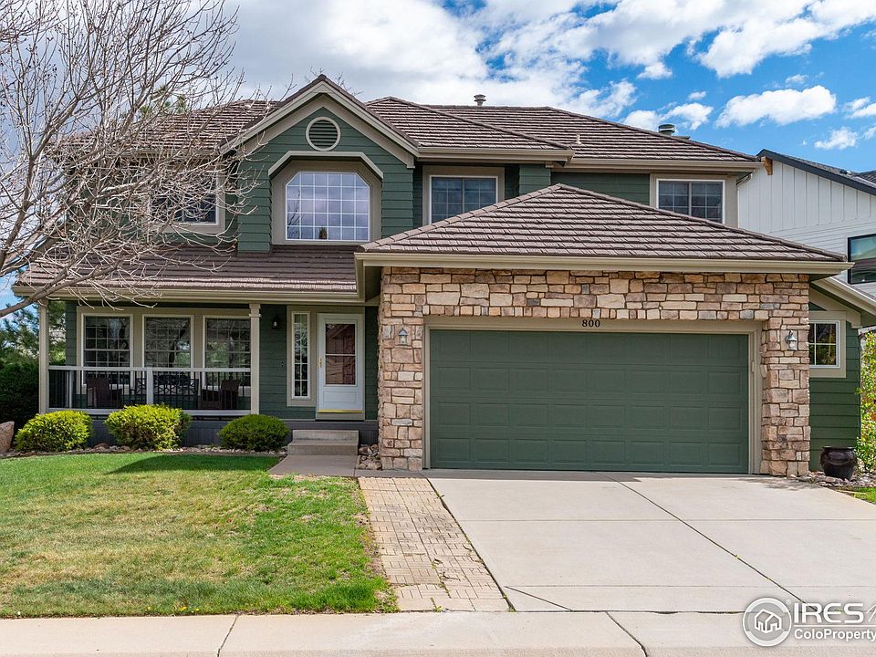 Step into this charming 2-story home, nestled among mature trees on a corner lot, just across the street from the Coal Creek Trail. Enjoy peaceful mornings on the quaint front porch with your coffee in hand. As you enter, gleaming hardwood floors welcome you. The main level features a living room that flows seamlessly into the formal dining room, perfect for hosting guests, and a spacious private office, perfect for remote work. The renovated kitchen overlooks the tree-filled backyard and the greenbelt behind the home. Unwind by the inviting fireplace in the family room or entertain on the expansive back deck. Upstairs, the primary suite features a spacious ensuite bathroom and walk-in closet. Two additional bedrooms have been updated with new carpet, and mountain views are showcased in the loft area. The finished basement includes a large recreational room, a versatile flex space, an extra bedroom, a 3/4 bath, and a sizable storage room with a utility sink. With newer windows and new paint inside and out, this home boasts a fresh feel and is protected by a robust steel roof, blending aesthetic appeal with unmatched durability. An oversized 2-car garage allows storage of bikes, tools & toys. Walk or bike to Monarch K-8 & Monarch High School! Enjoy all the amenities that the Coal Creek Ranch neighborhood has to offer such as the community pool, tennis courts, and clubhouse, as well as the many trails along the golf course and to Old Town Louisville & Downtown Superior via the Coal Creek Trail.