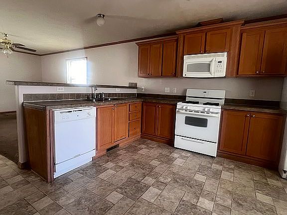 This home is truly stunning, featuring a spacious living room that seamlessly flows into the expansive kitchen. The master suite boasts a vast bathroom complete with additional built-in cabinets that complement the kitchen's cabinetry, as well as a generous bathtub/shower combination. The other two bedrooms are conveniently situated at the front of the house, each with ample closet space. The second full bathroom is outfitted with extra built-in storage cabinets and a complete bathtub and shower combination. The home comes equipped with: - A two-car driveway - Central air conditioning - A gas-forced air furnace - A laundry room - A handicap-accessible ramp