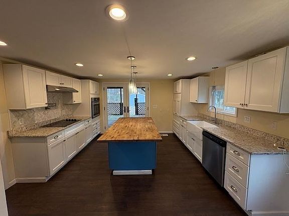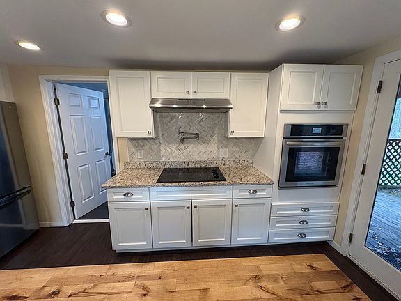 Welcome to this charming two story three bed, one bath home nestled in the trees on a 3.68 acre lot. You enter the house through a charming mudroom, which opens into a large living area with plenty of natural light. The lovely, updated kitchen features stone countertops, a beautiful farm house sink, pot filler over the stove, wall oven, stainless steel appliances, and ample storage. The butcher block island offers storage and additional workspace. The primary bedroom features a French door leading to a large deck and two large closets for storage. The bathroom has a large stone walk-in shower with a rainfall showerhead and jets. The stackable washing machine and dryer are conveniently located in the bathroom. The garage features new doors and plenty of space for both vehicles and a work area. This home is a must-see! Contact your agent for a showing today.