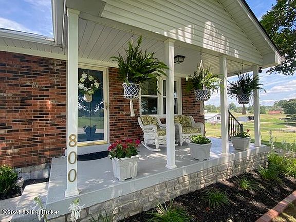 A little piece of paradise awaits you at 800 Stonehouse Road. Three-bedroom two bath brick ranch style home with partial unfinished walkout basement & two car 24x30 detached garage situated on 2.65 serene country acres near town. Covered front porch greets you as you enter into the the desirable open floorplan. Living Room with nice hardwood floors & cozy fireplace. Kitchen has large pantry & comes equipped with full complement of fingerprint resistant stainless appliances including range/oven, refrigerator, dishwasher & microwave. Carpeted Primary Bedroom suite offers a jacuzzi tub. Two additional carpeted bedrooms & full hall bath with walk in shower complete the main level of the home. Unfinished basement is great for storage or can be finished to your liking. New windows in November of 2022. Venture outdoors to enjoy the rear deck, patio & lovely gazebo all great entertaining options. 30x40 building as well as barn with 2 stalls, lean to & storage. Come home to the quiet country living with excellent commute location to Louisville, E-town & Ft. Knox as well as close proximity to all the amenities that historic Bardstown has to offer.
