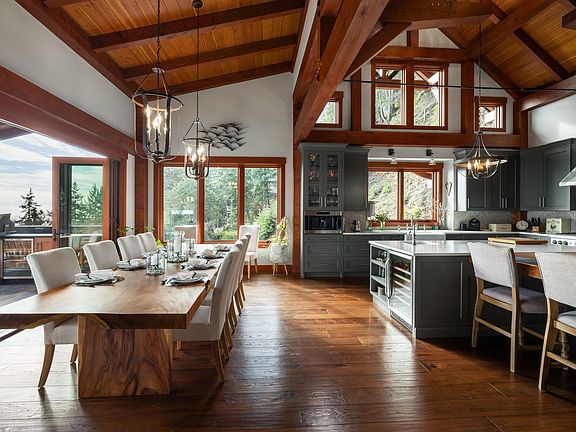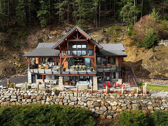 This stunning ocean view property featuring a masterpiece of engineering, custom built, Canadian Timberframe Ltd home is ready to welcome a new family. The expansive timber peaks & over 1100 sq.ft. covered entertainment deck sets it apart. The open plan main floor boasts timberframe ceilings soaring over 24'. Custom Loewen Douglas Fir interior/metal exterior windows & doors, engineered Hickory flooring & exclusive lighting compliment the space. Chefs will covet the gourmet kitchen with state of the art appliances & expansive Quartz countertops. Main level primary bedroom, ensuite & walk in closet showcase the cathedral timberframe ceilings. A special retreat w/floor to ceiling fireplaces & private decks overlooking ocean, mountain and coastal views. Vancouver within easy reach.