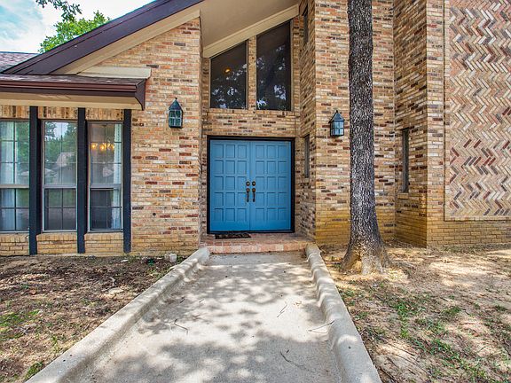 Stately brick home with mature trees & circle drive. 2 car oversized side entry garage. Entry has soaring ceilings & beautiful staircase. Formal dining off of entry. Living room features floor to ceiling brick wood-burning fireplace, built-ins & rustic wood beams. Breakfast room has picture window & chair railing. Beautifully updated kitchen equipped with granite countertops, double oven & electric cooktop. Stunning master suite has tons of windows for ample natural lighting & en-suite with dual vessel sinks, garden tub & separate shower. Large 2nd master with attached full bath. 2 oversized bedrooms upstairs, 1 with balcony overlooking expansive multi-level yard with wooden privacy fence. Pool needs work.