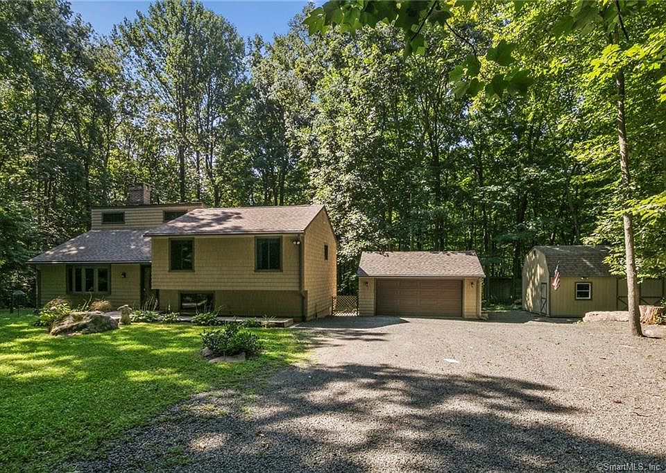 NEW PRICE!!! Private and peaceful, yet close to everything the shoreline has to offer! Surrounded by woods & wildlife you won't believe you're still in CT! This 4 bedroom, 3 bath contemporary split has room for everybody. Youre greeted by a large living room with fireplace & vaulted ceilings. A formal dining room & kitchen flank this space with sliders leading out to an expansive deck. 3 bedrooms are located on the 2nd level as well as an updated full bath. Plenty of space for a guest room, home office, craft space or your very own dressing room. The top floor features a large master bedroom w/full bath & slider out to a private deck for morning coffee. The large, lower level would be perfect as a family room, for entertaining, or as a potential in-law space. With private entrance off a brick patio and a full bath w/laundry this space also works for guests or Airbnb. All this before you even go outside! Good sized front & back yards (read not too much to mow), fenced in areas, above ground pool, multi-level deck, brick patio & plenty of room for a big firepit! This home has everything you need to enjoy the outdoors. Detached 2 car garage & adjacent shed have electricity (220 volt) & designated breaker panels. Shed has heat. Architectural shingles & cedar shake, vinyl siding promise years of maintenance free living. Move right in & start making your own memories. Close to highway, shopping, medical facilities, movie theater, gyms, YMCA & more. PRICED TO SELL!!!