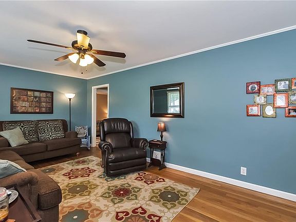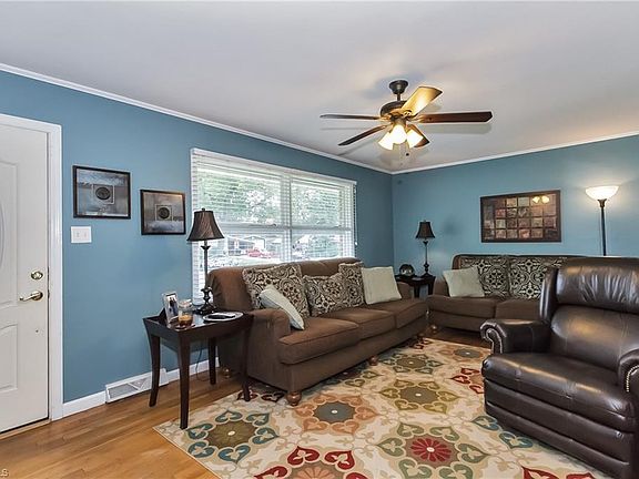 Very neat, well-maintained brick ranch. Living room features hardwood flooring and ceiling fan; den has fireplace, hardwoods & ceiling fan plus access to attached carport. Eat-in kitchen has lots of cabinets, beautiful tile backsplash, electric range, built-in microwave, dishwasher & refrigerator and large laundry closet.All bedrooms are carpeted and have ceiling fans. New roof in 2012, new HVAC in 2003. Large rear fenced backyard; carport has large storage area & detached 8ft x 20ft storage building.