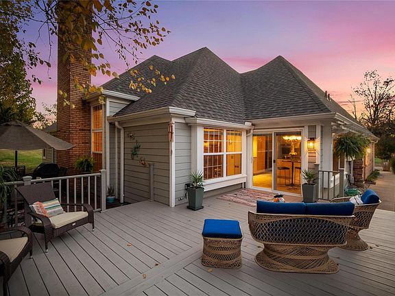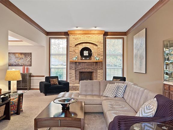 Welcome home to highly sought out Oak Hill Estate, a charming, walkable neighborhood known for its welcoming atmosphere & quiet streets! Estate quality build, exceptionally cared for ranch home where no detail has been overlooked! Immaculate is an understatement when describing the impeccable condition you will discover! Greatroom boasts stunning 11' ceilings with elegant crown moldings & baseboard details, brick fireplace flanked by windows, completed by dining with tray ceiling & wet bar. Custom kitchen flooded with natural light offers exceptional counter space, island, tile floor, appliances & recessed lighting. Step outside to a 24x18 deck with built in seating overlooking professional landscaping throughout, featuring custom lighting, water feature & custom plantings. Primary suite boast tray ceiling, walk-in closet with custom organization & primary bath. Laundry offers ample storage & counterspace. Oversized garage is fully finished. Too many amenities to list, contact for tour